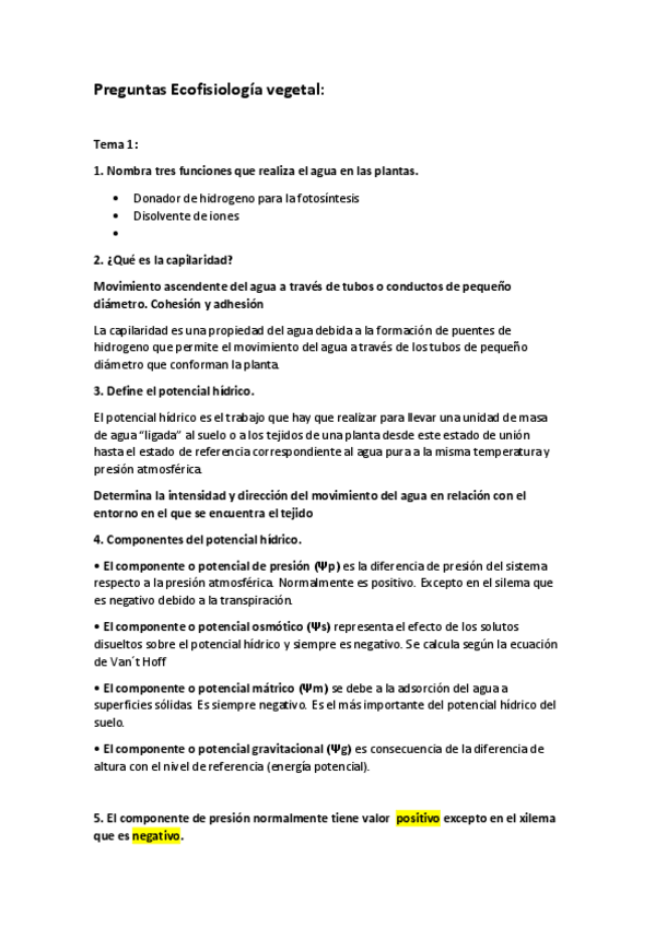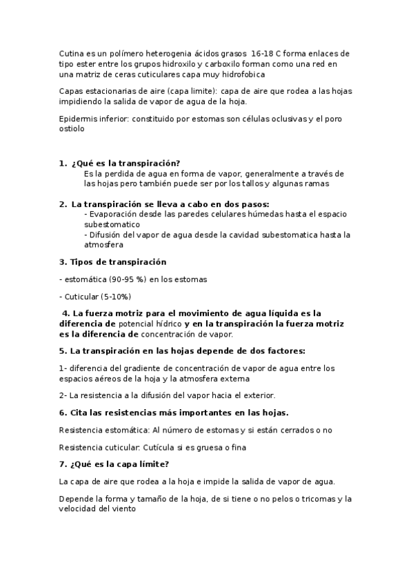 He publicado nuevos apuntes de 4º Ecofisiologia Vegetal: Preguntas examen