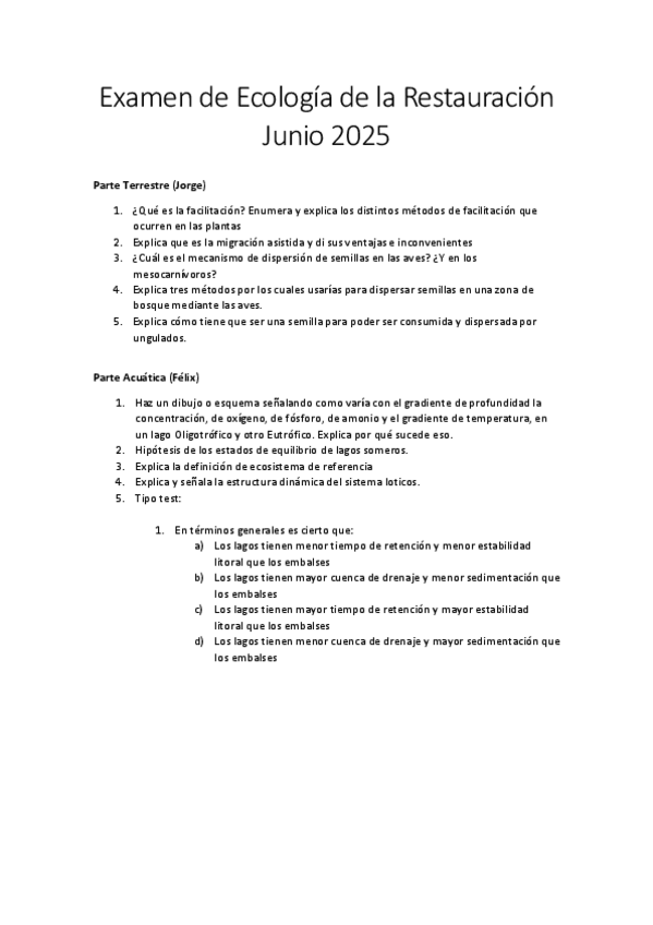 He publicado nuevos examenes de 4º Ecología de la restauración: Examen-Ecologia-de-la-Restauracion-2025.pdf