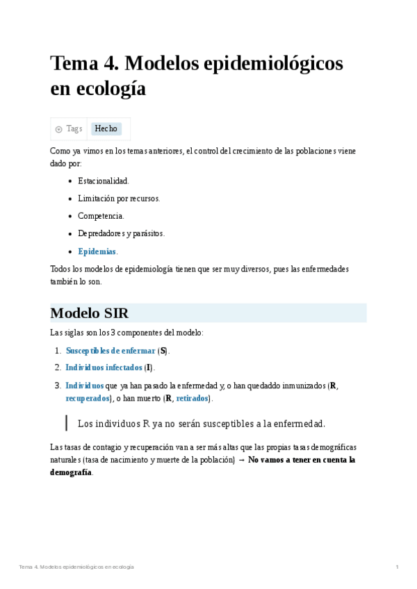 He publicado nuevos apuntes de 3º Ecología II: Tema 4. Modelos epidemiológicos en ecología.pdf