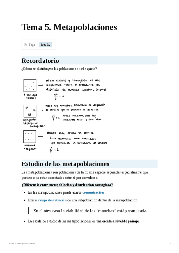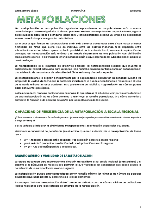He publicado nuevos apuntes de 3º Ecología II: Tema 5. Metapoblaciones.pdf