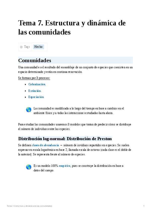 He publicado nuevos apuntes de 3º Ecología II: Tema 7. Estructura y dinámica de las comunidades.pdf