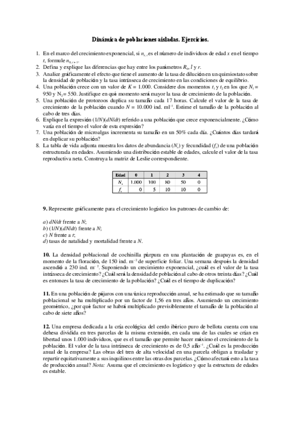 ejercicios de dinamica de poblaciones aisladas e interacciones entre especies