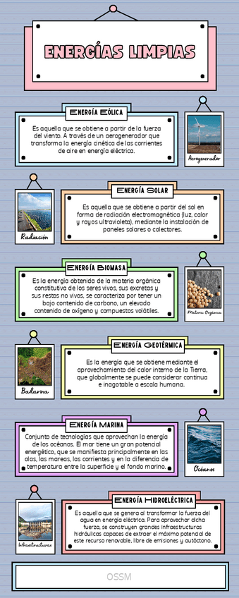 En este documento se encuentra la clasificación de las energías limpias junto con su definición correspondiente.