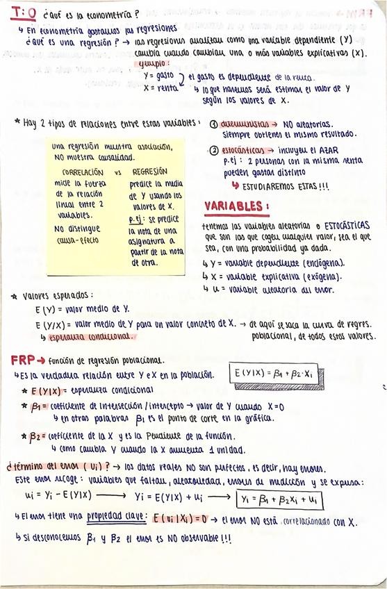 Temario de econometría resumido con lo mas importante y con respuestas a ejercicios del libro (problemas y verdadero/falso)