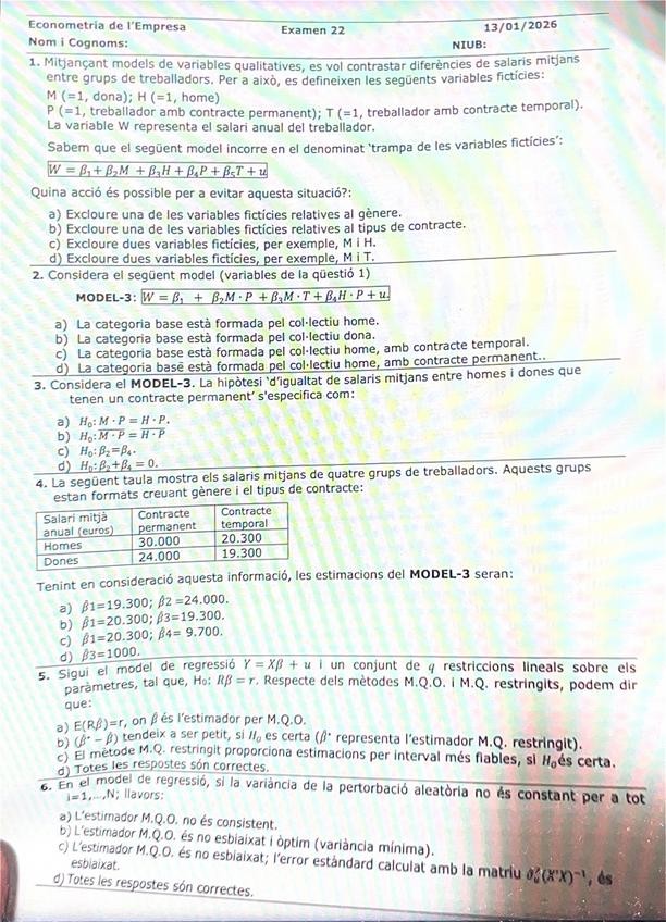 He publicado nuevos examenes de 3º Econometria de l'Empresa: examen-final-tarda-econometria-2026.pdf