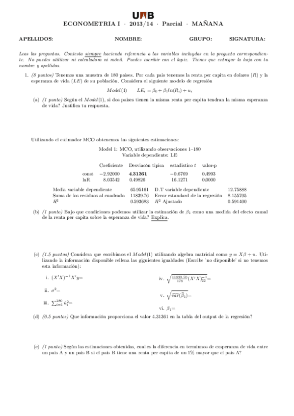 ECONOMETRIA I - TOT EL CURS