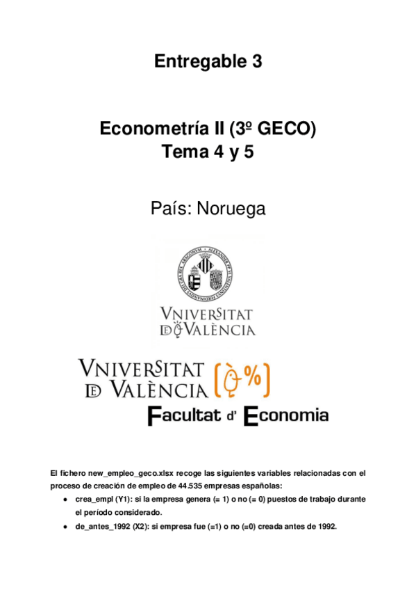 He publicado nuevos trabajos de 3º Econometría II: Entregables Noruega
