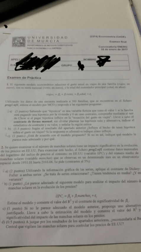 Exámenes econometría