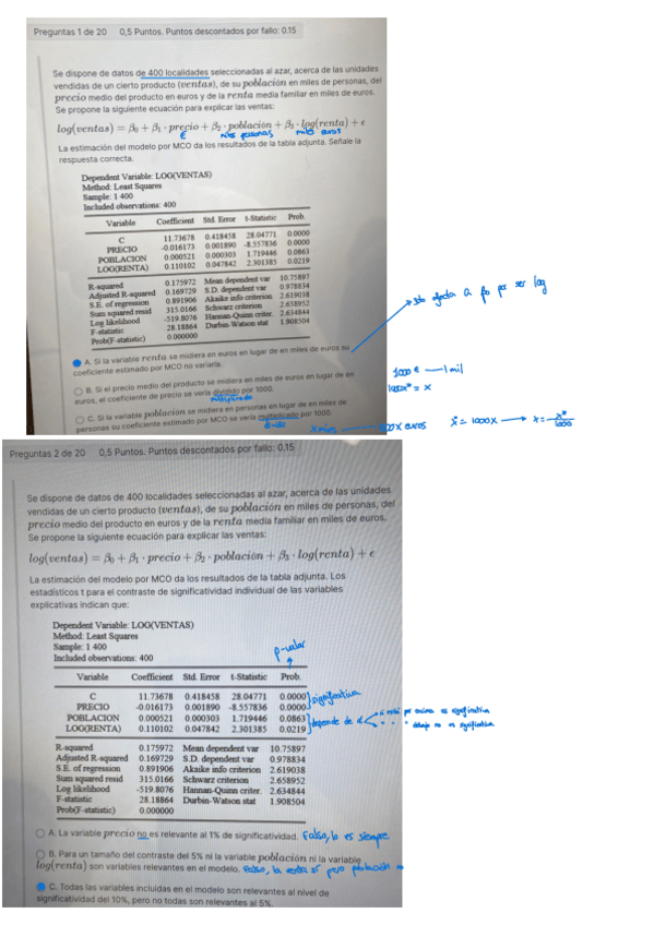 He publicado nuevos examenes de 3º Econometría: Tipo test