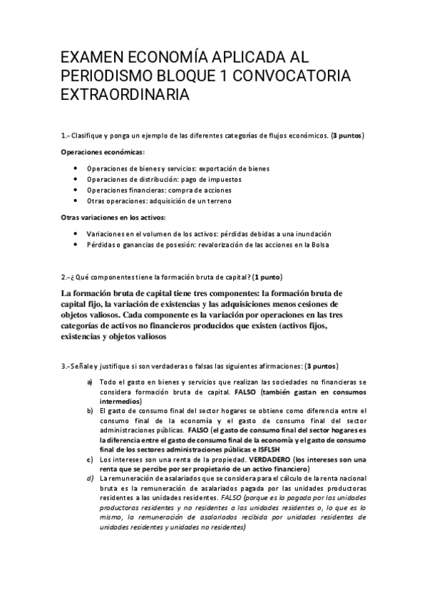 Exámenes solucionados correspondientes a los Bloques 1 y 2 de la asignatura de 1° Periodismo, Economía Aplicada al Periodismo, impartida por Esther Decimavilla en el grupo de mañana, que cayeron en la convocatoria extraordinaria del curso 2023-24.