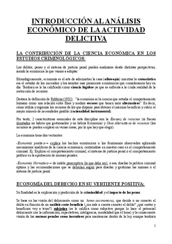 He publicado nuevos apuntes de 1º Economía de la actividad delictiva: Parte teórica Economía