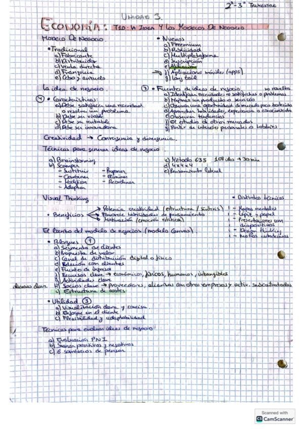 Apuntes organizados con colores para segundo de bachiller