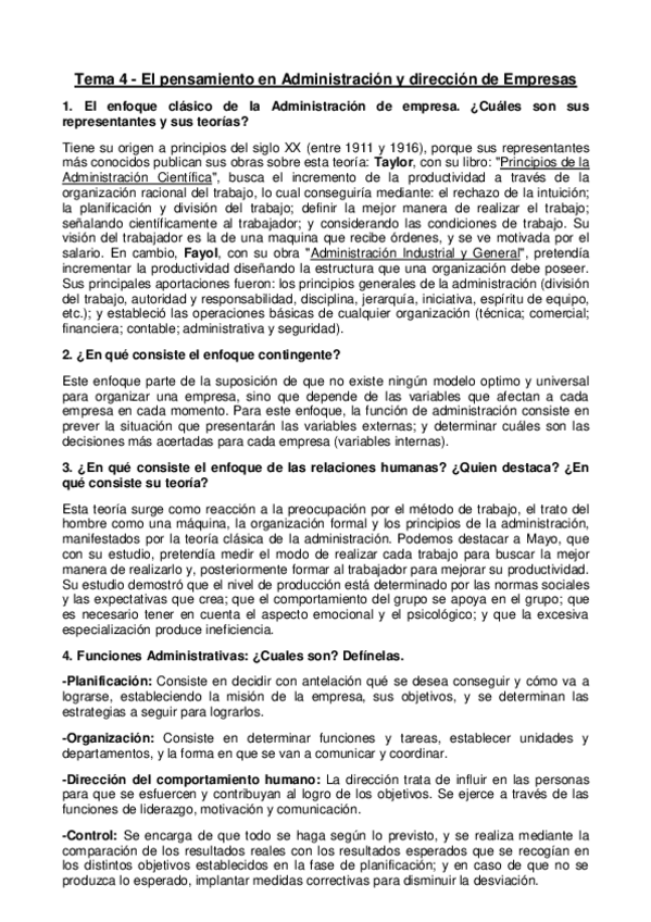 He publicado nuevos apuntes de 1º Economía de la Empresa: Tema 4 El pensamiento en Administración y dirección de Empresas. Las funciones administrativas. La empresa y el entorno.pdf