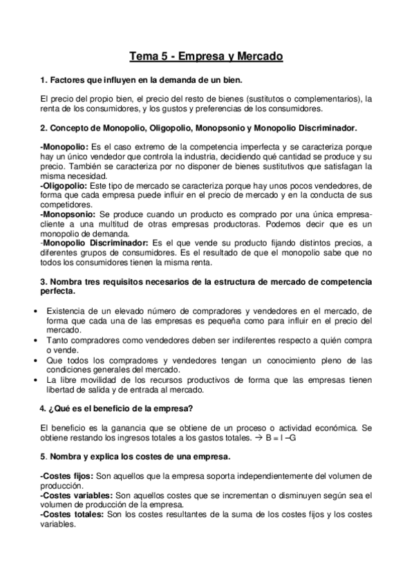 He publicado nuevos apuntes de 1º Economía de la Empresa: Tema 5 Empresa y Mercado.pdf