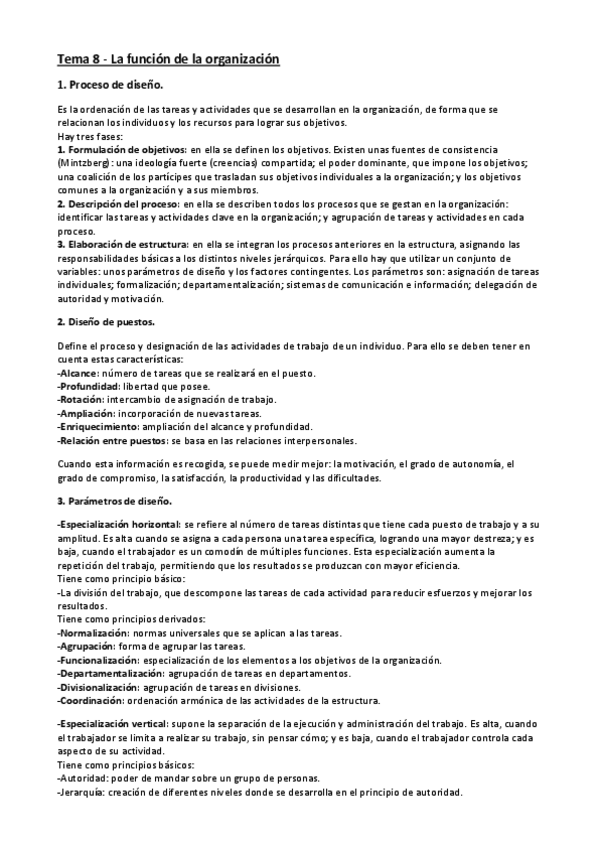 He publicado nuevos apuntes de 1º Economía de la Empresa: Tema 8 - La función de organización.pdf