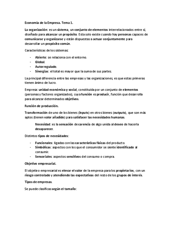 He publicado nuevos apuntes de 1º Economía de la Empresa: Resúmenes de la asignatura