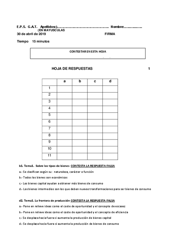 Exámenes economía