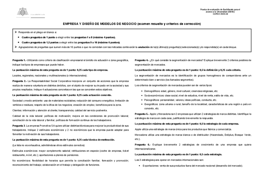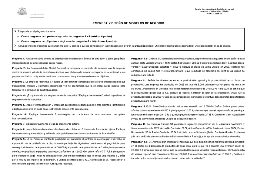 He publicado nuevos examenes de Economía de la Empresa: Examen EBAU Empresa y modelos de negocio