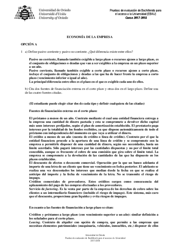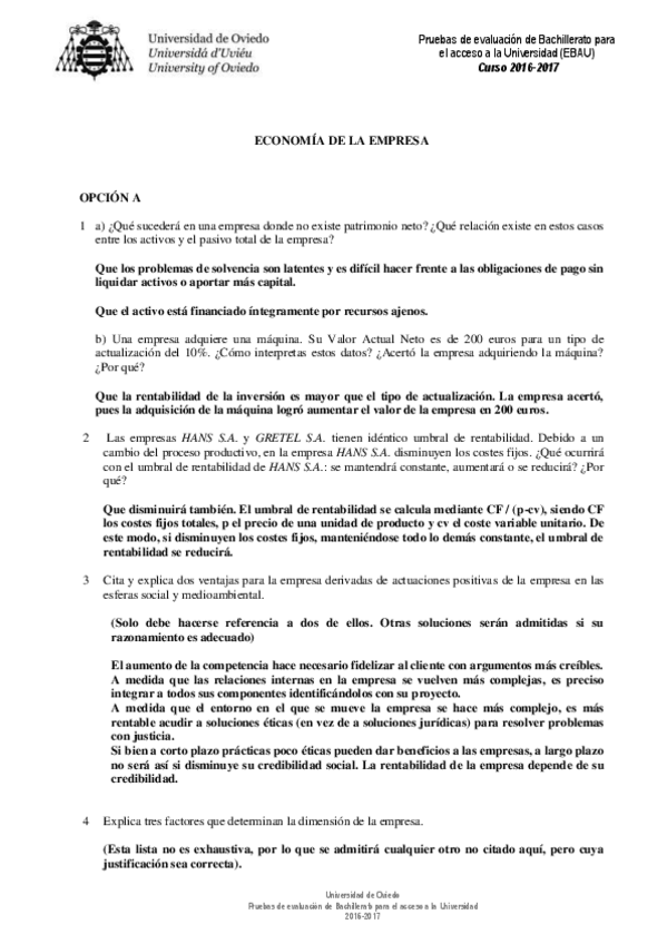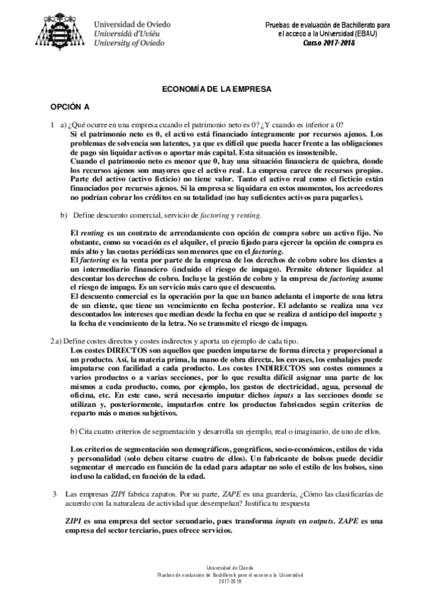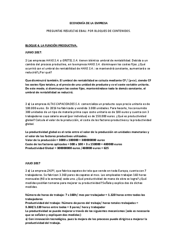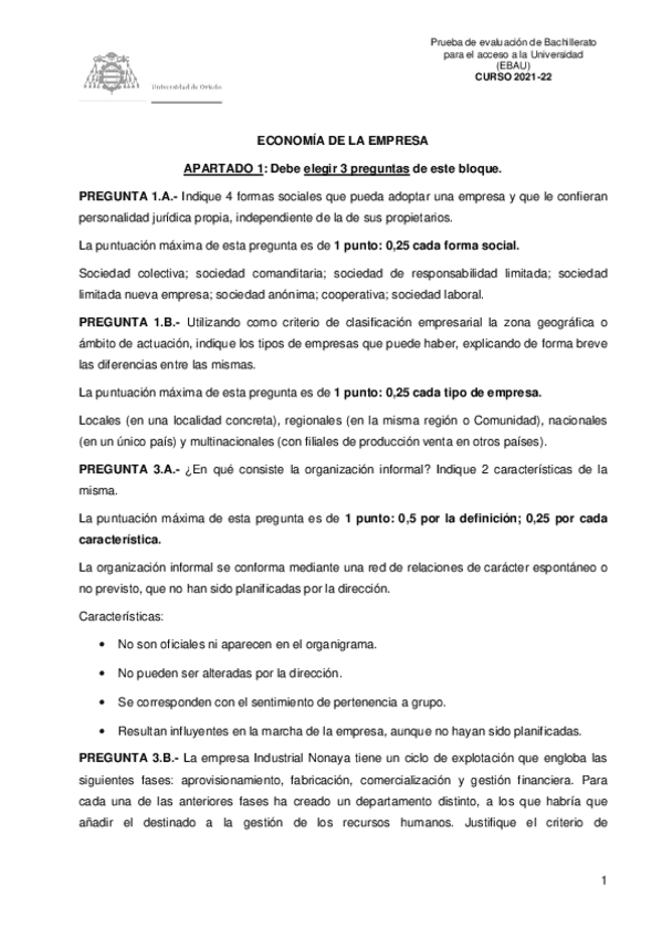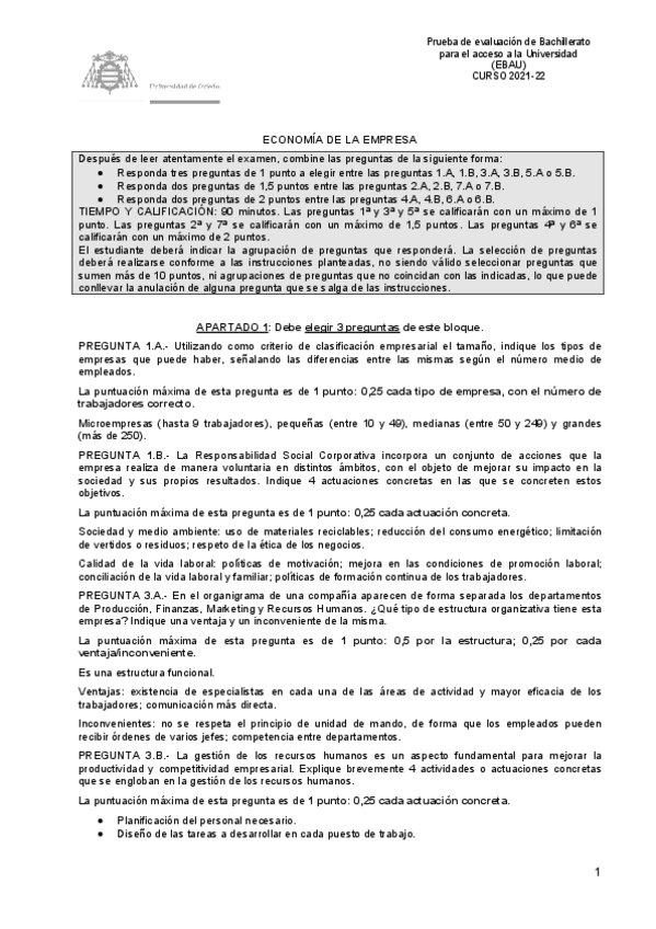 Exámenes Resueltos Economía de la Empresa EBAU 2022