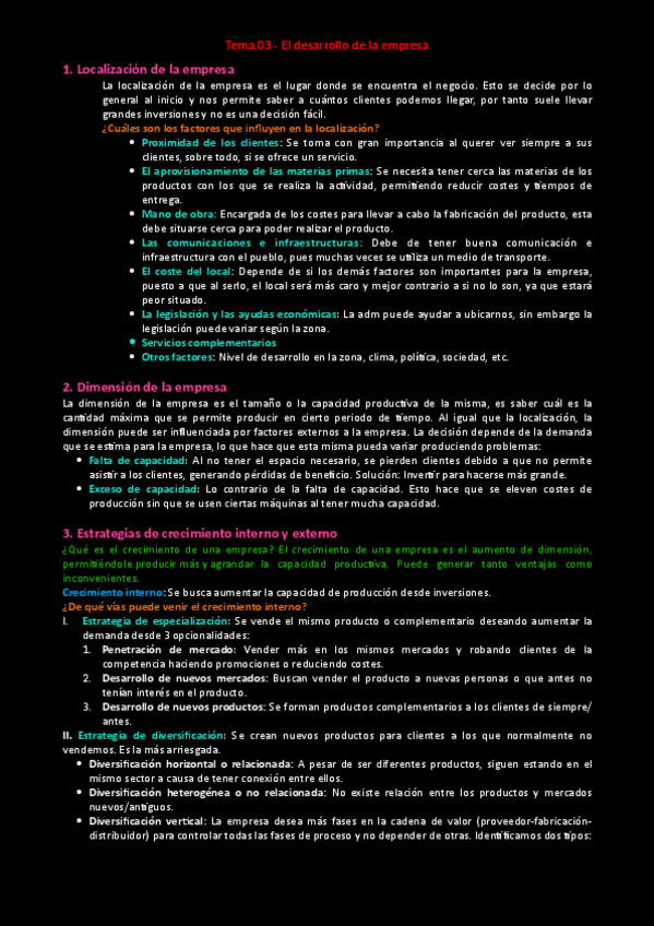 UNIDAD 3: DESARROLLO DE LA EMPRESA Aprende cómo eligen su ubicación, crecen internamente o mediante fusiones. Incluye ventajas, riesgos y economías de escala. Estos apuntes son ideales para repasar rápido, entender los conceptos clave y prepararte a fondo