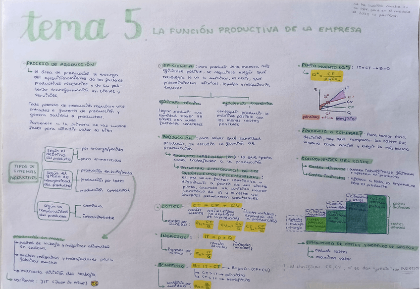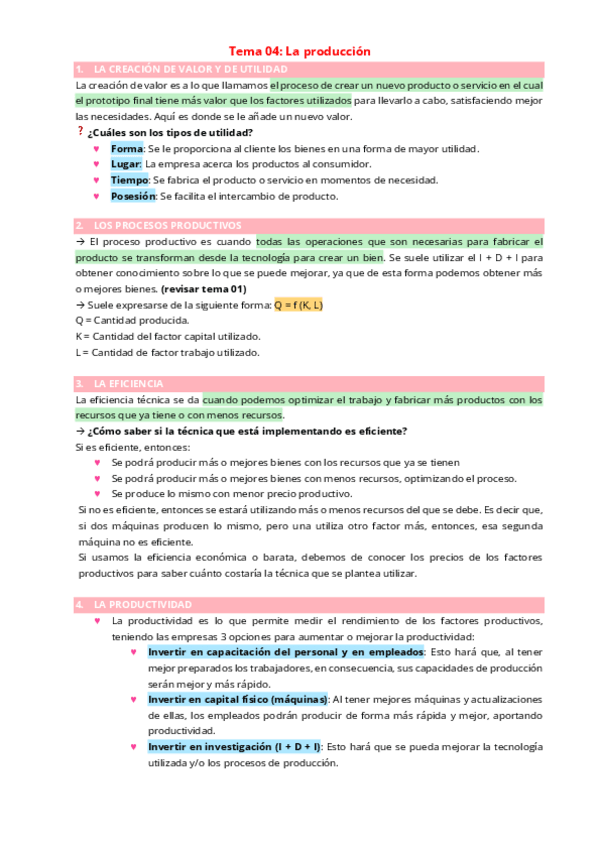 UNIDAD 6: LA PRODUCCIÓN EN LA EMPRESA Explica el proceso productivo, eficiencia técnica y económica. Incluye cálculo de costes y tipos de productividad. Estos apuntes son ideales para repasar rápido, entender los conceptos clave y prepararte a fondo para