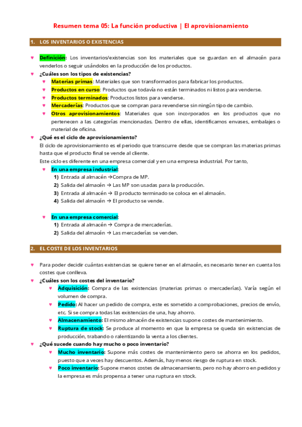 UNIDAD 7: EL APROVISIONAMIENTO Gestión de inventarios, tipos de stock, costes y modelo de pedido óptimo. Fundamental para minimizar pérdidas y evitar rupturas. Estos apuntes son ideales para repasar rápido, entender los conceptos clave y prepararte a fond