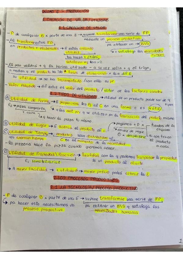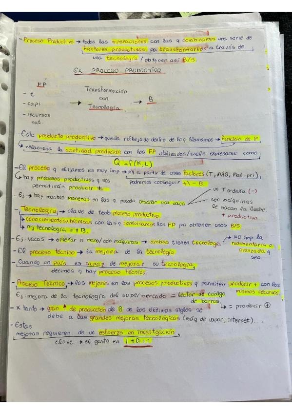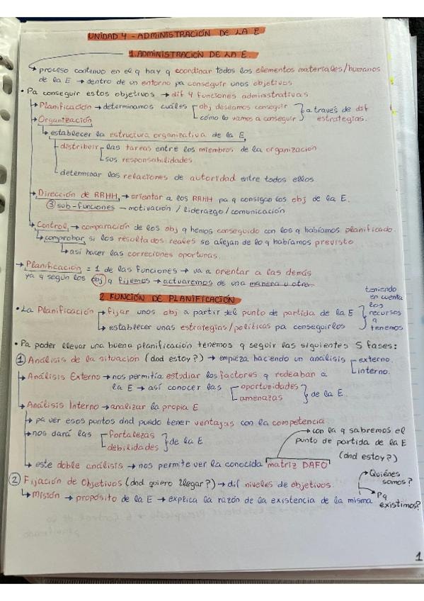 Apuntes organizados con colores para segundo de bachiller