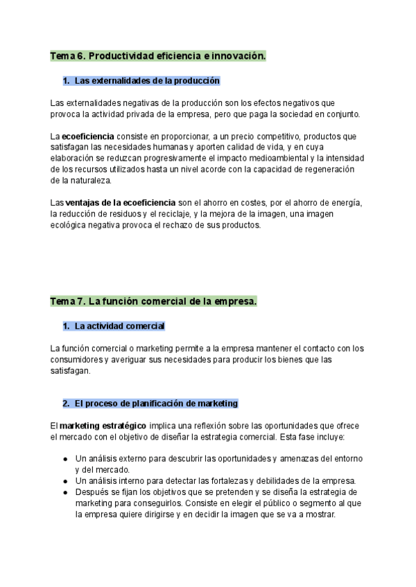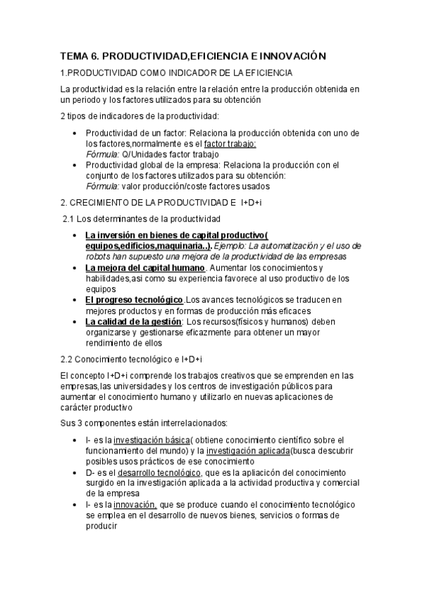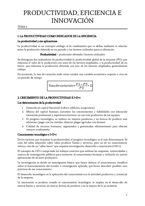 Tema 6. Productividad eficiencia e innovación y Tema 7. La función comercial de la empresa.