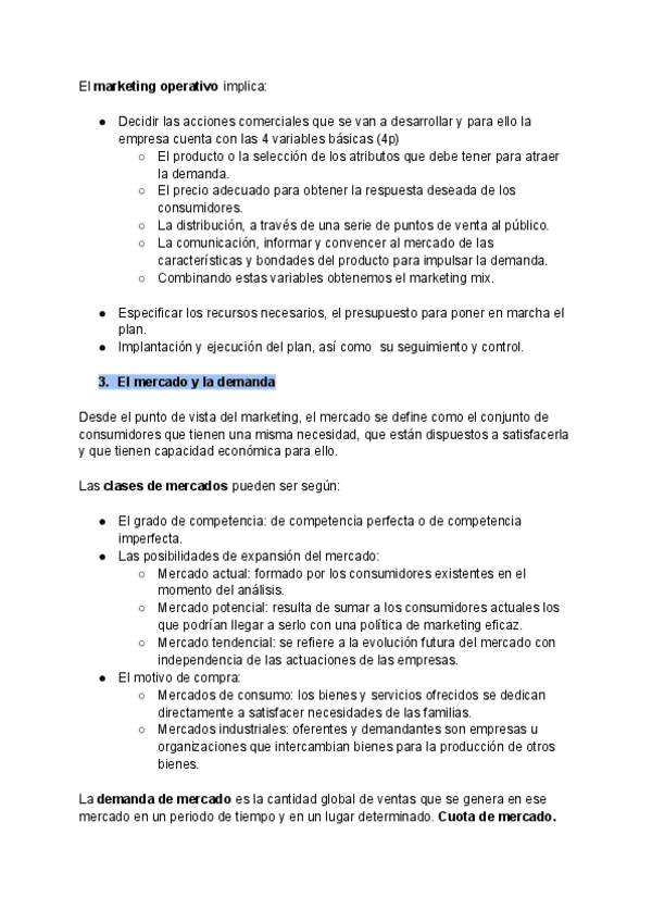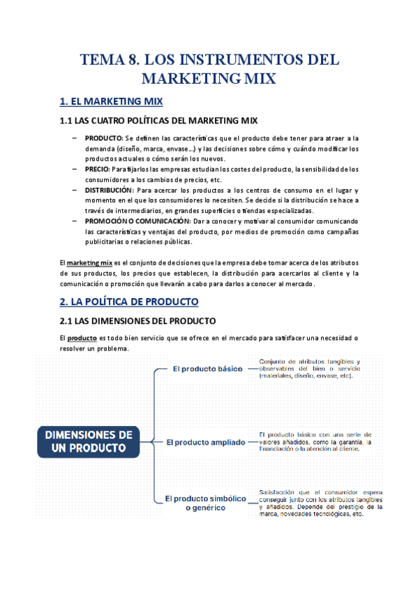 Apuntes tema 8 economía-marketing mix para 2º bachillerato en Madrid