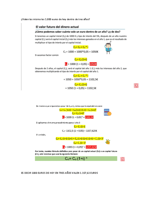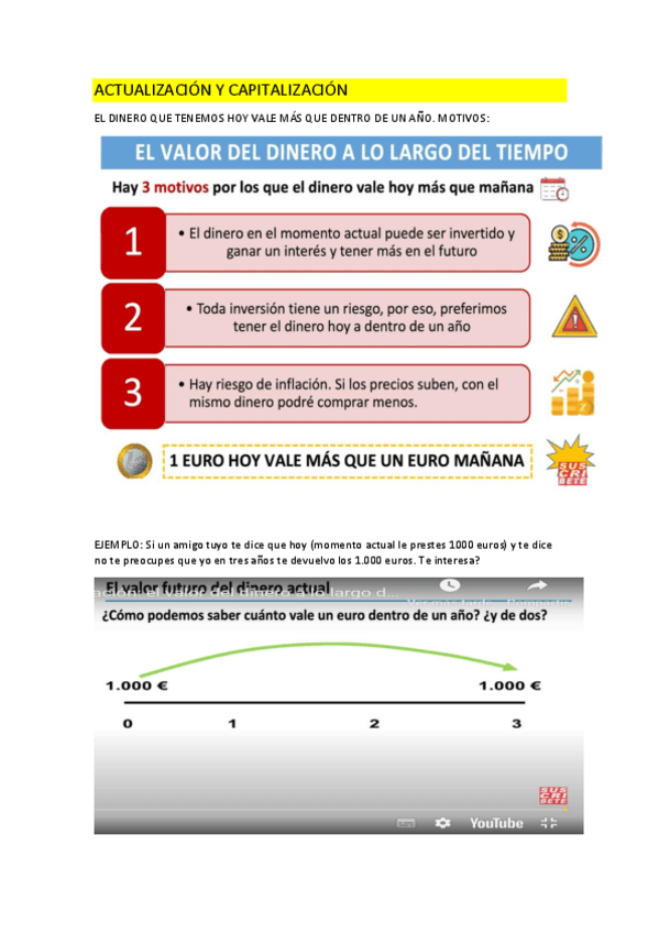 Explicación actualización y capitalización para 2º bachillerato en Madrid