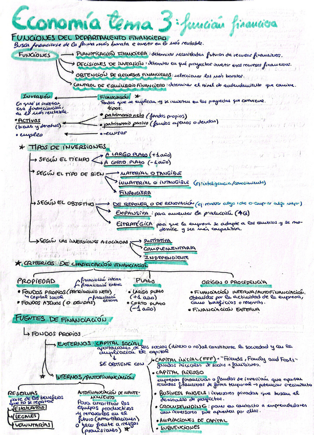 Teoría esencial de los temas 3,4,5,6 de Economía de la Empresa. Tema 3: La función financiera. Tema 4: Contabilidad. Tema 5: Área comercial. Tema 6: planificación y recursos humanos. Con estos apuntes puedes obtener la máxima nota.
