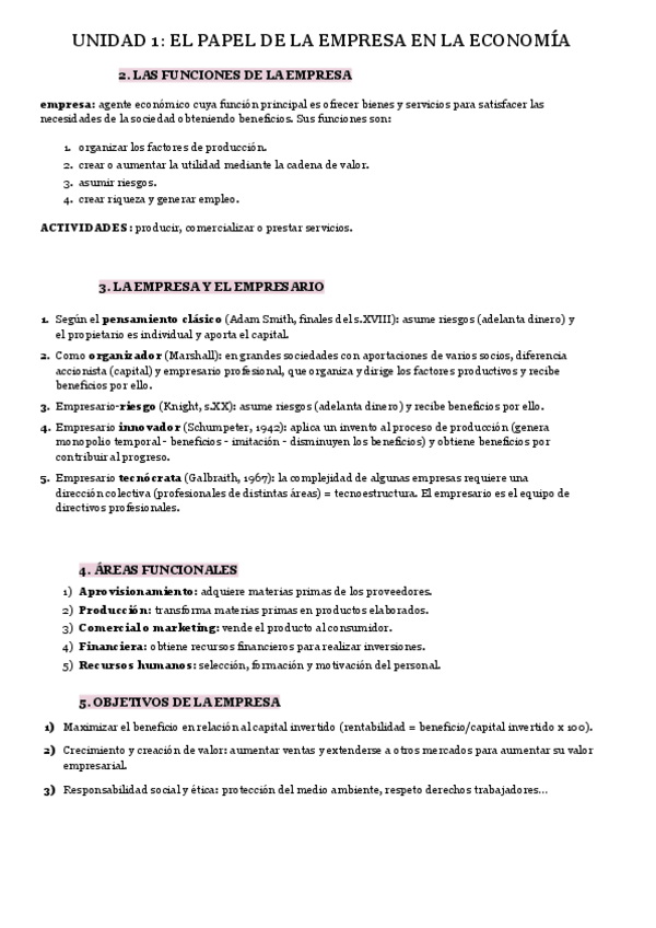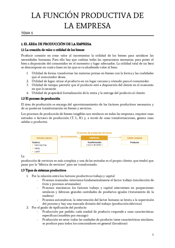 Todos los apuntes necesarios para sacar un 10 en los exámenes de la primera evaluación de Economía de la Empresa. Temas 1 y 2: El emprendedor y la empresa; La función de producción. Con ellos obtuve un 10 en dicho examen de la PAU.