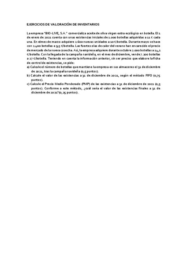 Ejercicios y Resoluciones Empresa 2BACH