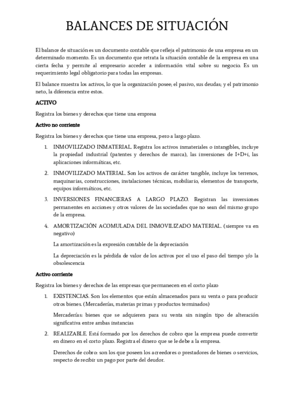 Esquema para hacer un balance económico para 2º bachillerato en Madrid