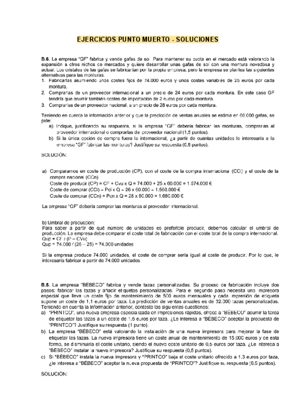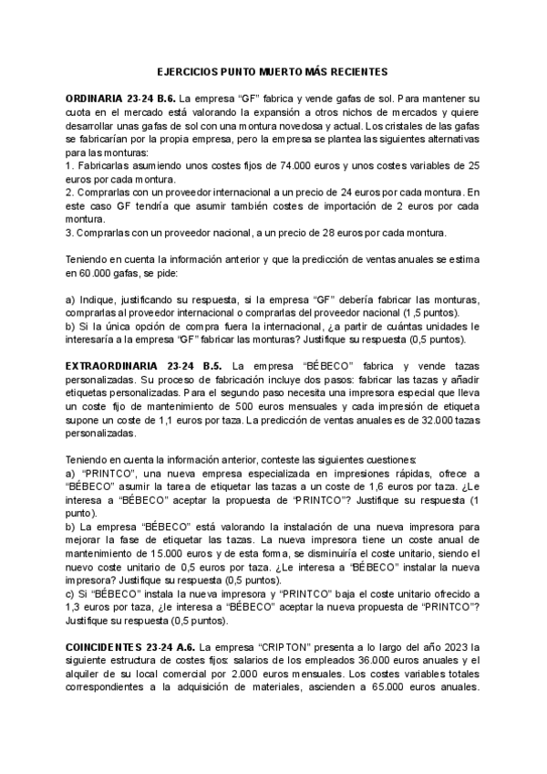 He publicado nuevos practicas de Economía de la Empresa: EJERCICIOS PUNTO MUERTO PAU