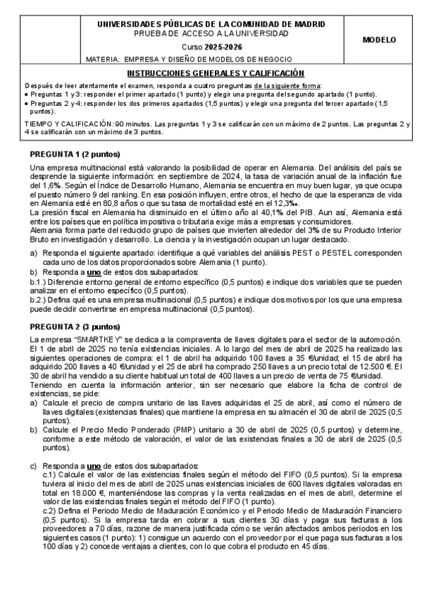 He publicado nuevos examenes de Economía de la Empresa: Modelo-PAU-2026-Empresa.pdf
