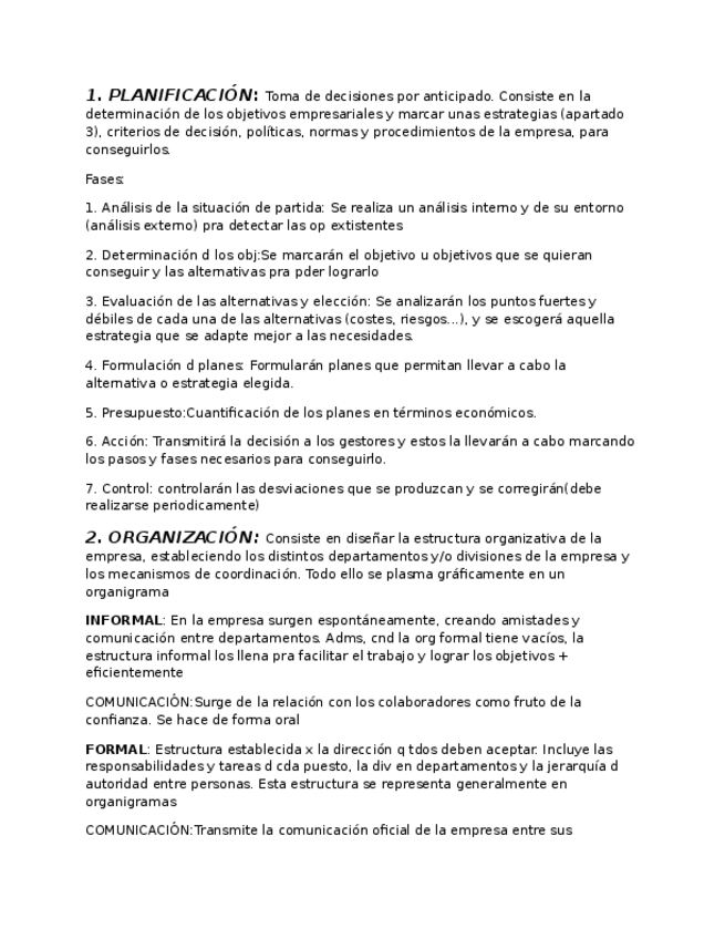 Apuntes de los 4 primeros temas de Economía de la Empresa en formato horizontal y muy esquemático para facilitar el estudio. Espero que os sirvan :)