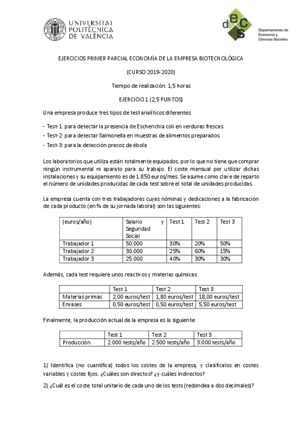He publicado nuevos ejercicios de 1º Economía de la Empresa Biotecnológica: Ejercicios resueltos parcial 1