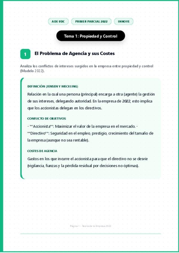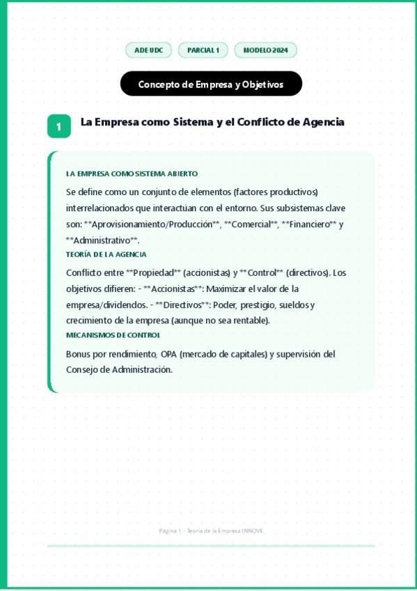 Economía de la Empresa - Primer Parcial - ADE UDC