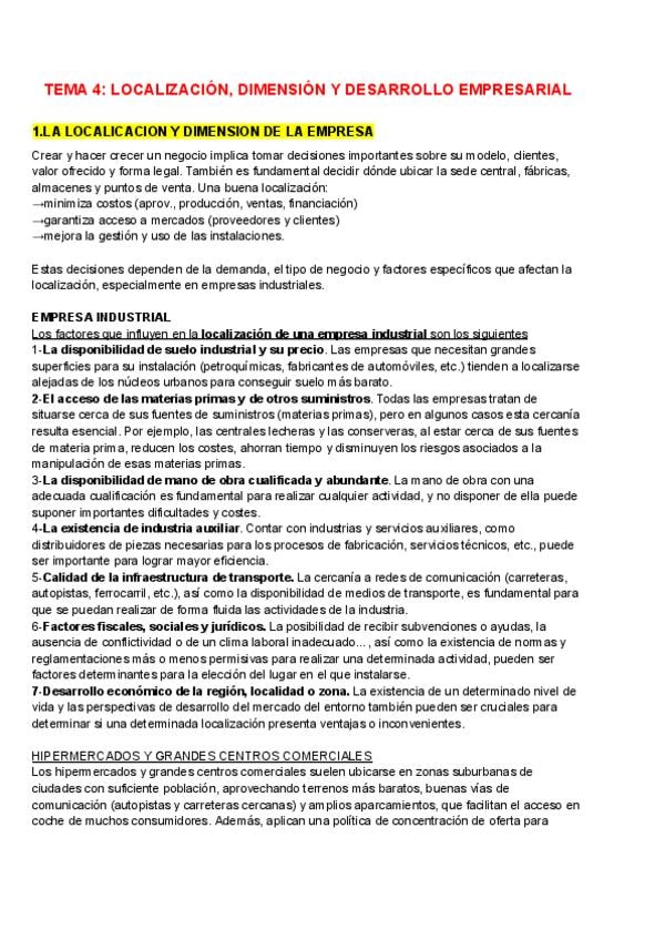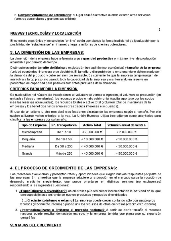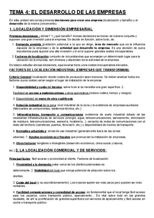 Tema 4 de Economía: LOCALIZACIÓN, DIMENSIÓN Y DESARROLLO EMPRESARIAL Para la PAU, con explicaciones de la parte práctica