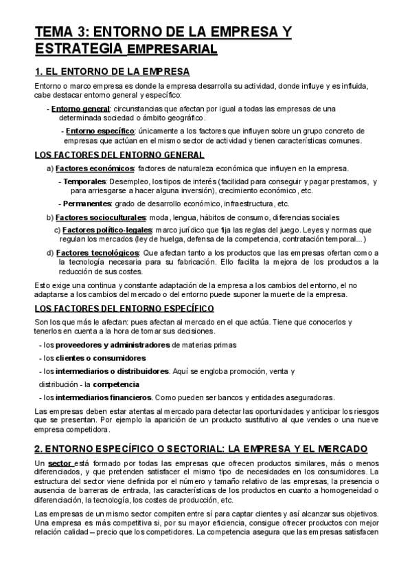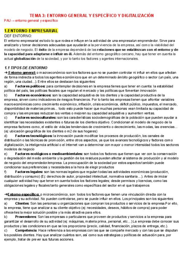 Apuntes Economía del tema 3: ENTORNO GENERAL Y ESPECÍFICO Y DIGITALIZACIÓN. Para la PAU