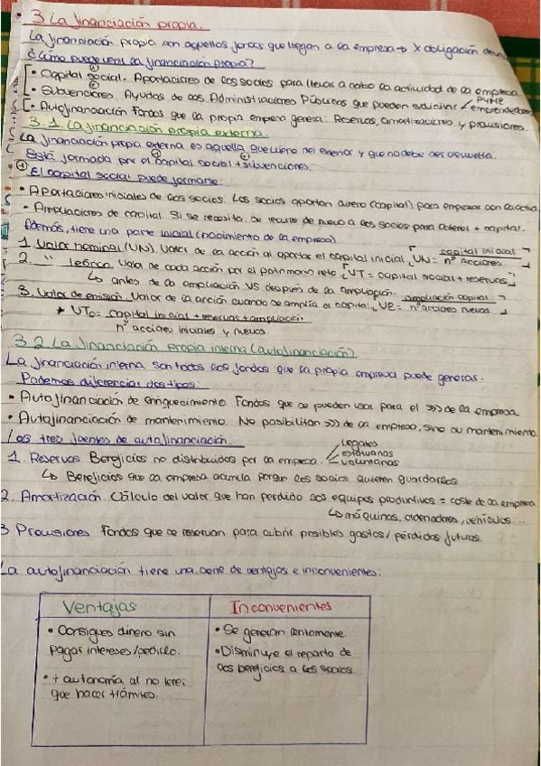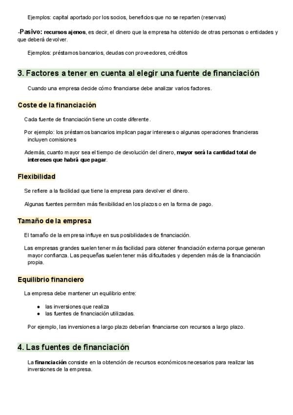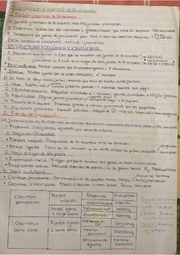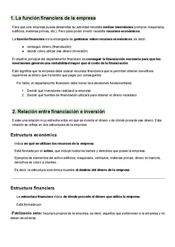 Teoría ordenada, completa y esquematizada del tema de financiación e inversión