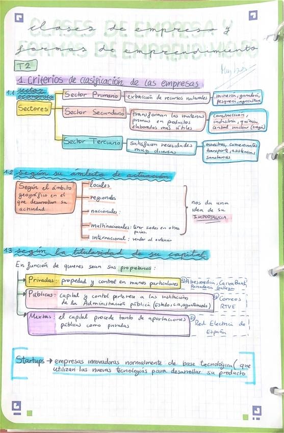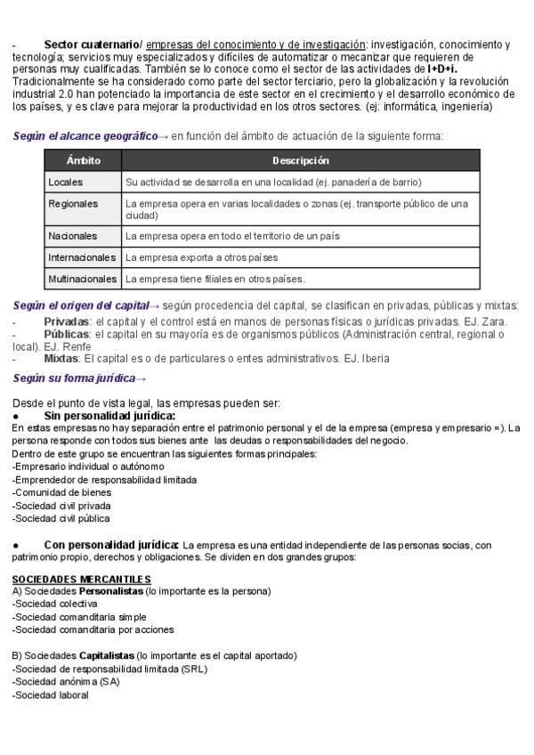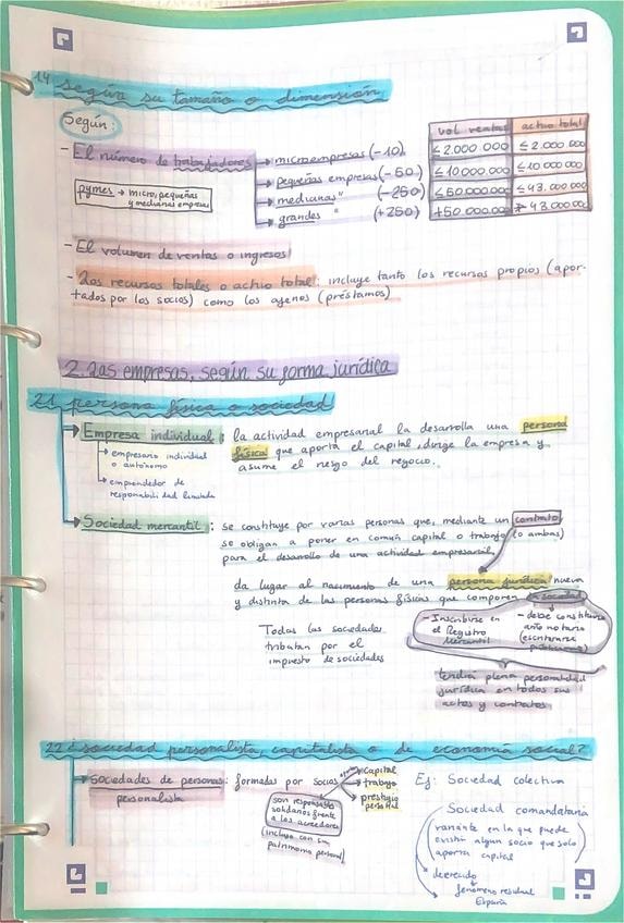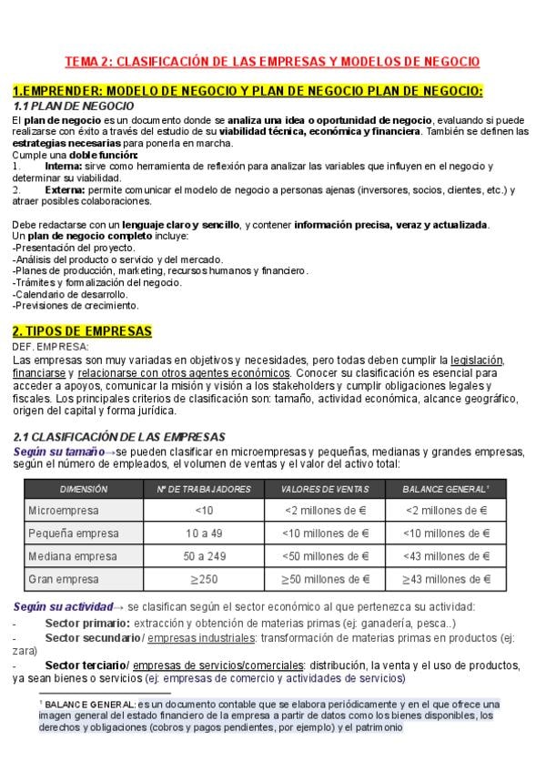 Apuntes del tema 2 (CLASIFICACIÓN DE LAS EMPRESAS Y MODELOS DE NEGOCIO) de economía para 2 Bachillerato y para la PAU