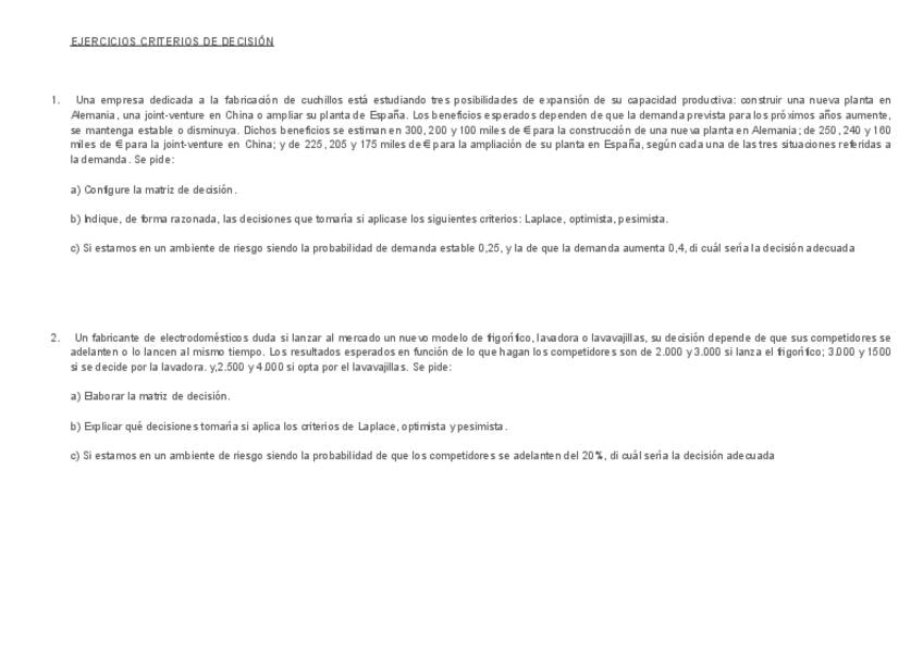 He publicado nuevos ejercicios de 2º Economia de la Empresa II: CRITERIOS-DE-DECISION.pdf