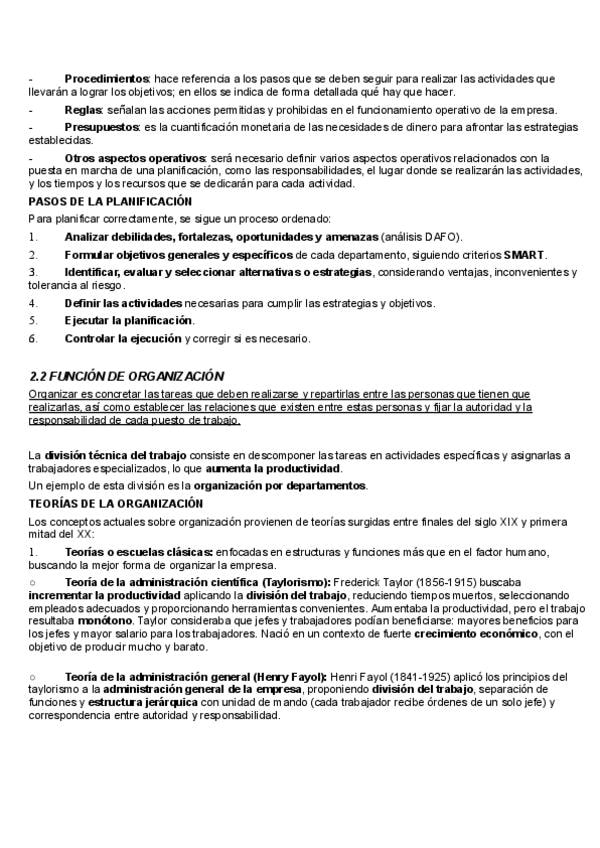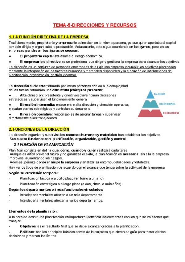 Apuntes del tema 5 de Economía de la Empresa: DIRECCIONES Y RECURSOS. Para la PAU y para 2 de Bachillerato