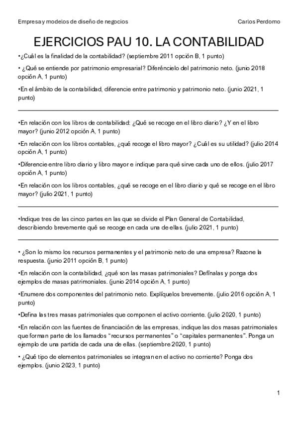 Ejercicios PAU de años anteriores del tema 10 La contabilidad de Empresa y modelos de diseño de negocios