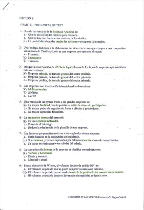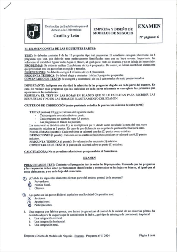 Modelo examen EBAU (Prueba de acceso a la Universidad): Economía de la Empresa y Modelos de Negocio II