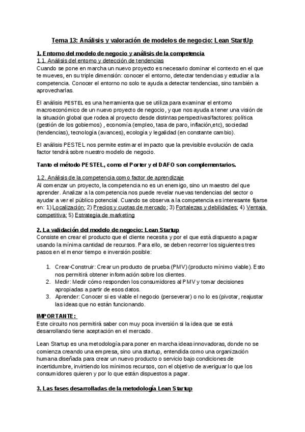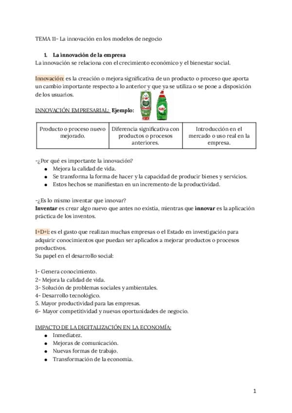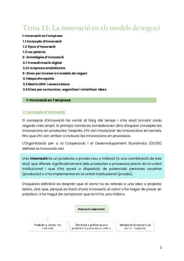 Temas 11 y 12. No es muy resumido, son las definiciones completas como se piden en la PAU. Asignatura Empresa y diseño de modelos de negocio, CV.