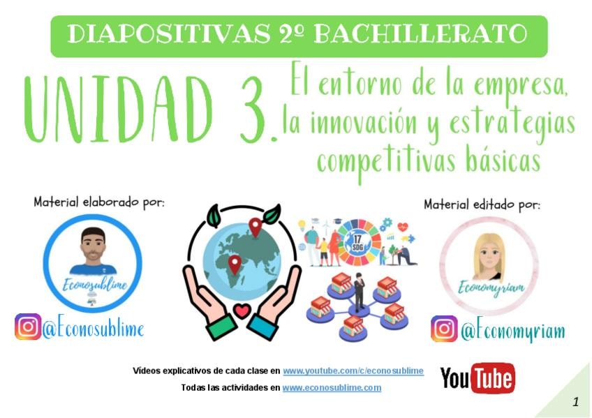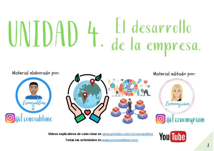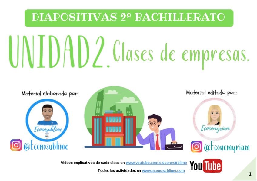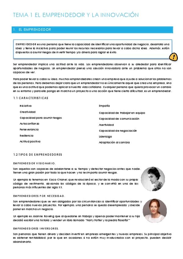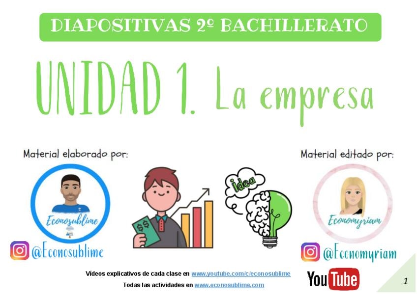 Apuntes del tema 1 (LA EMPRESA EL EMPRESARIO Y EL EMPRENDIMIENTO) de economía para 2 de Bachillerato y para la PAU, con explicaciones tanto de la teoría como de la práctica