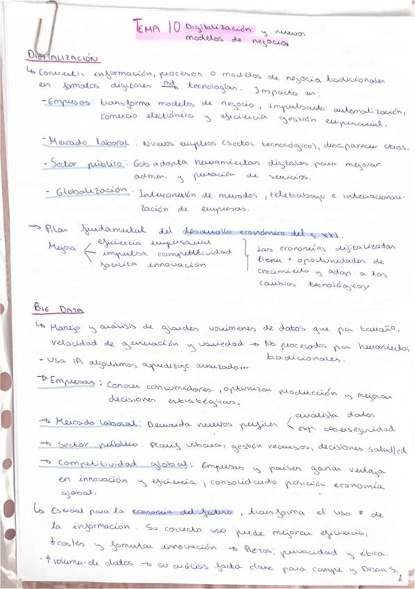 Resumen completo tema 10, definiciones PAU. Digitalización y nuevos modelos de negocio